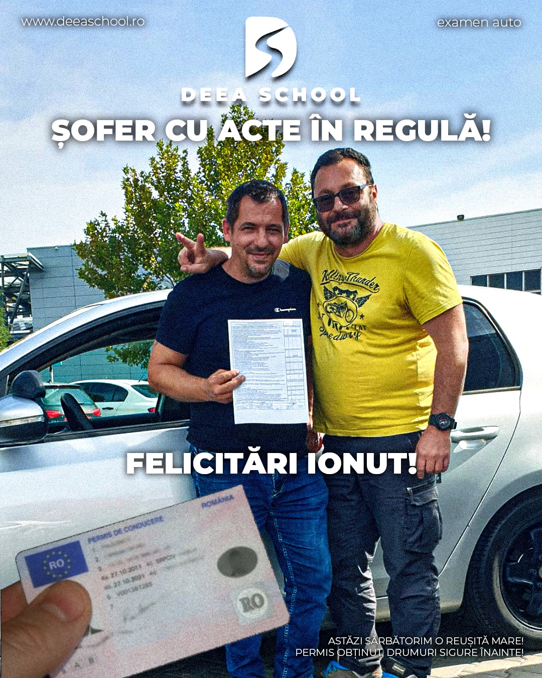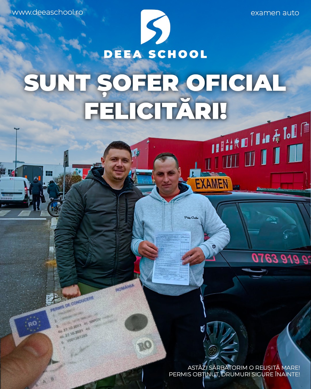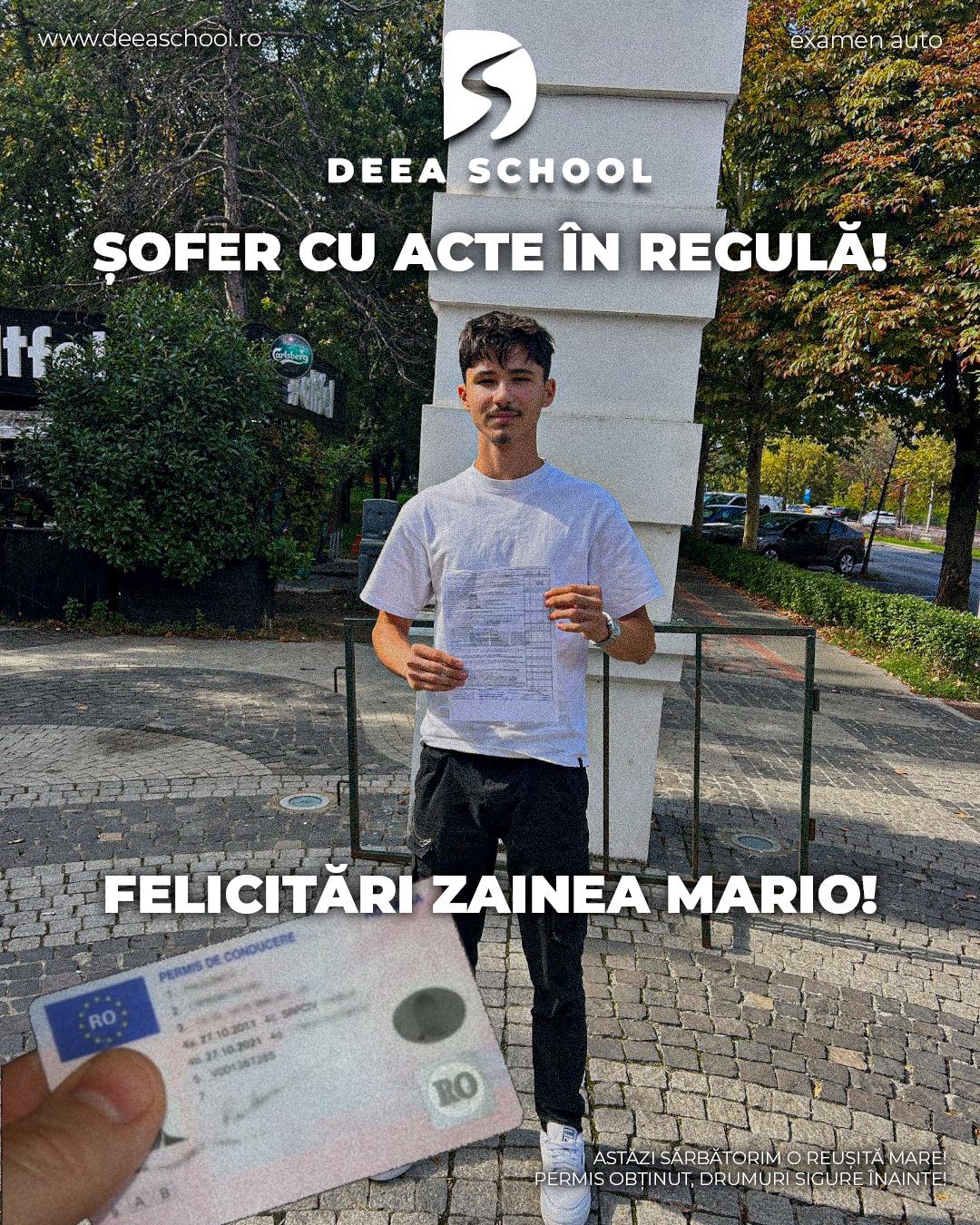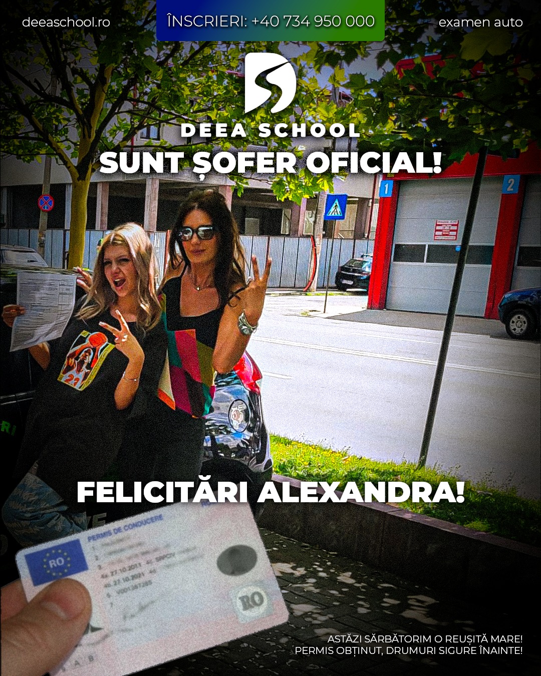 La Deea School – Școala de Șoferi din Sector 3, succesul fiecărui cursant este și succesul nostru! De-a lungul anilor, am pregătit cu pasiune sute de elevi care și-au obținut permisul de conducere, pornind astfel încrezători pe drumurile din România. În această secțiune, vă prezentăm mândri o galerie de imagini cu cursanții noștri care au absolvit și au promovat examenul auto cu succes!